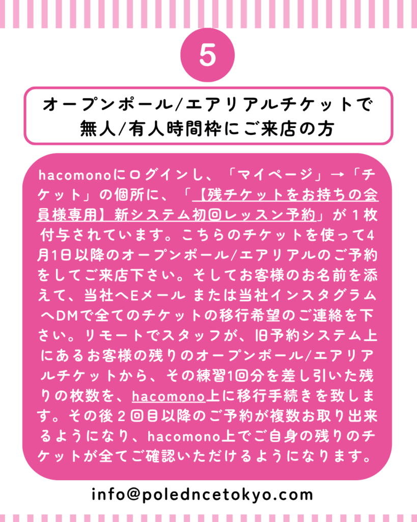 | ⑤ オープンポール/エアリアルチケットを現在お持ちのお客様へのご案内 |
