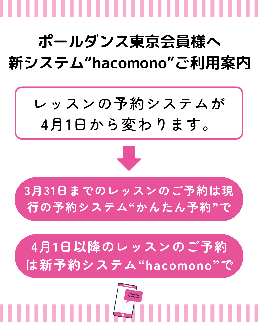 現会員様の新レッスン予約システム「hacomono」(4/1〜)のご利用方法