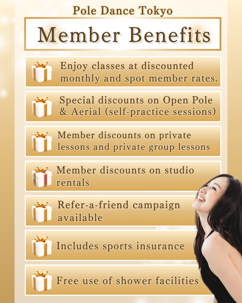 *A spot membership is for those who have completed registration but prefer not to enrol in a monthly subscription plan, and instead take classes on a pay-per-class basis according to their schedule. Member benefits (private lessons, studio rental discounts, Open Pole & Aerial discounts, and those ticket purchases) are available. Please note that if there is no activity for 1 year after your last visit, your membership will expire.